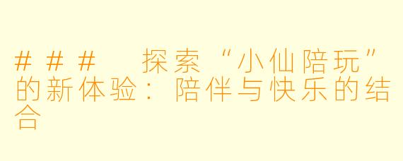 ### 探索“小仙陪玩”的新体验:陪伴与快乐的结合-小仙陪玩