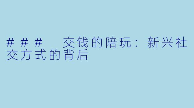 在现代社会中,交钱的陪玩逐渐成为一种新兴的社交方式。这种现象尤其在电子游戏和网络社交平台上愈发明显,许多人不再只是为了娱乐而游戏,更是为了寻找陪伴与交流。