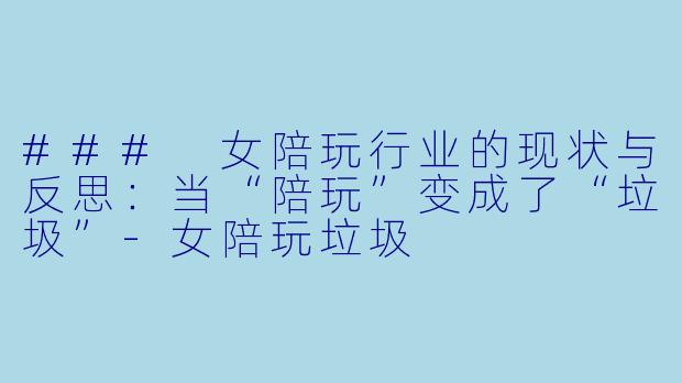 ### 女陪玩行业的现状与反思:当“陪玩”变成了“垃圾”-女陪玩垃圾