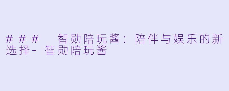 ### 智勋陪玩酱:陪伴与娱乐的新选择-智勋陪玩酱