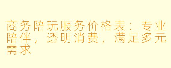 商务陪玩服务价格表:专业陪伴,透明消费,满足多元需求-商务陪玩价格表
