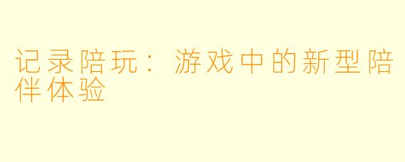 记录陪玩:游戏中的新型陪伴体验-记录陪玩