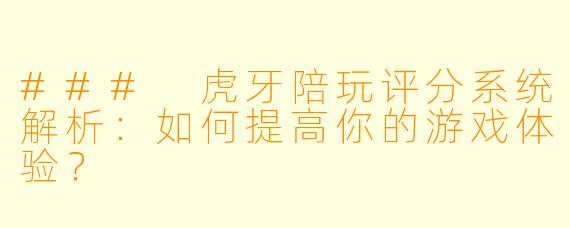 ### 虎牙陪玩评分系统解析:如何提高你的游戏体验?-虎牙陪玩评分