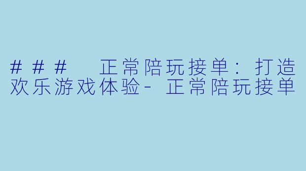 ### 正常陪玩接单:打造欢乐游戏体验-正常陪玩接单