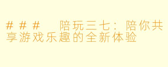 ### 陪玩三七:陪你共享游戏乐趣的全新体验-陪玩三七