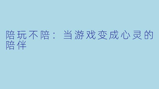 陪玩不陪:当游戏变成心灵的陪伴-陪玩不陪