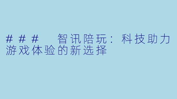 ### 智讯陪玩:科技助力游戏体验的新选择-智讯陪玩