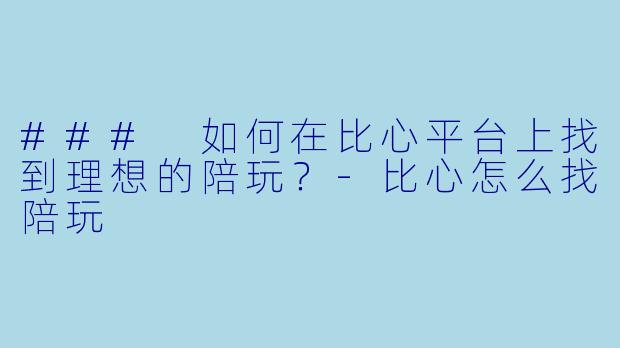 ### 如何在比心平台上找到理想的陪玩?-比心怎么找陪玩