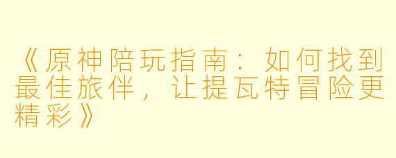 《原神陪玩指南:如何找到最佳旅伴,让提瓦特冒险更精彩》-原神的陪玩