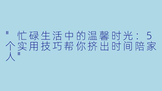 "忙碌生活中的温馨时光:5个实用技巧帮你挤出时间陪家人"-如何挤出时间陪家人玩