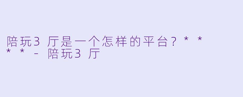 陪玩3厅是一个怎样的平台?** **-陪玩3厅
