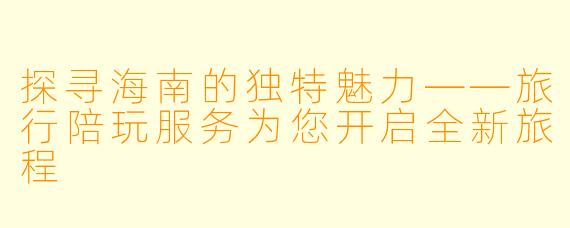 无论您是独自旅行还是与家人朋友同行,海南的旅行陪玩服务都将为您的旅行增添独特的色彩。快来体验吧!