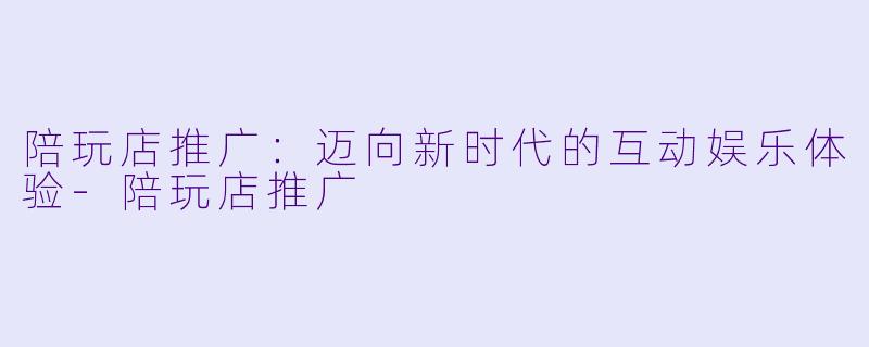陪玩店推广:迈向新时代的互动娱乐体验-陪玩店推广