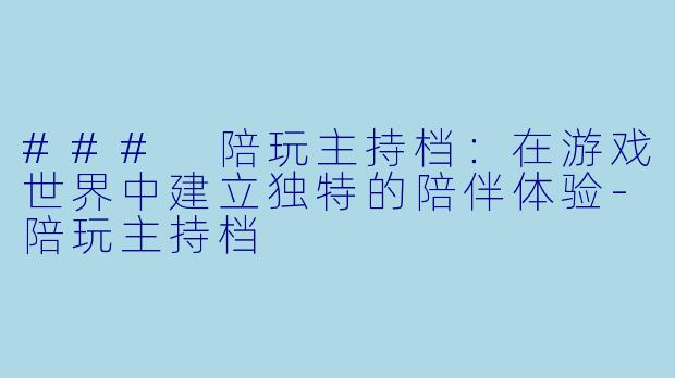 ### 陪玩主持档:在游戏世界中建立独特的陪伴体验-陪玩主持档