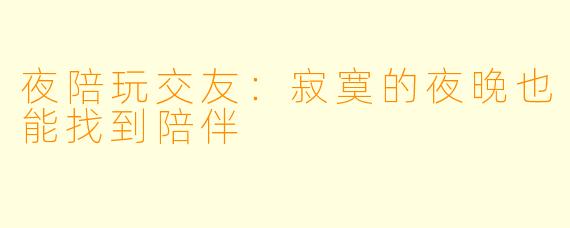 夜陪玩交友:寂寞的夜晚也能找到陪伴-夜陪玩交友
