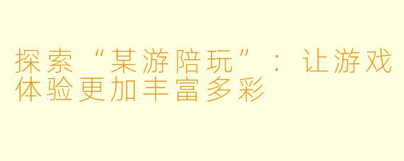 探索“某游陪玩”:让游戏体验更加丰富多彩-某游陪玩