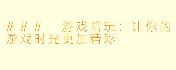 ### 游戏陪玩:让你的游戏时光更加精彩-游戏陪玩聊天接单