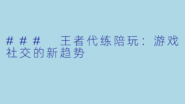 ### 王者代练陪玩:游戏社交的新趋势-王者代练陪玩