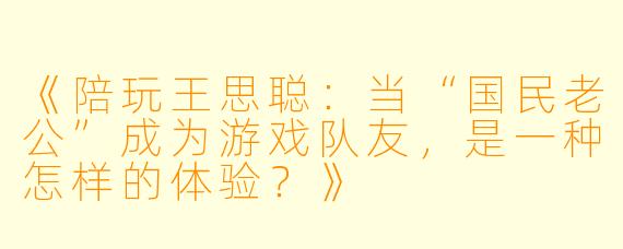 《陪玩王思聪:当“国民老公”成为游戏队友,是一种怎样的体验?》-陪玩王思聪