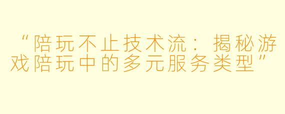 “陪玩不止技术流:揭秘游戏陪玩中的多元服务类型”-陪玩有技术陪还有什么陪
