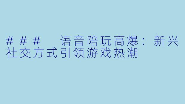 ### 语音陪玩高爆:新兴社交方式引领游戏热潮-语音陪玩高爆