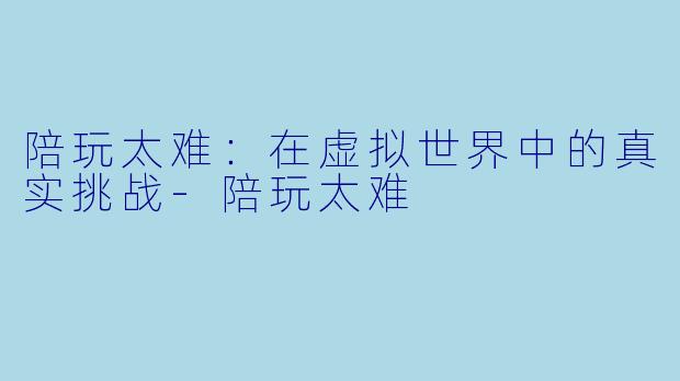 陪玩太难:在虚拟世界中的真实挑战-陪玩太难