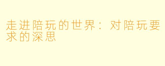 走进陪玩的世界:对陪玩要求的深思-对陪玩要求