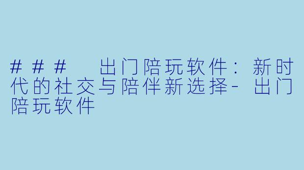 ### 出门陪玩软件:新时代的社交与陪伴新选择-出门陪玩软件