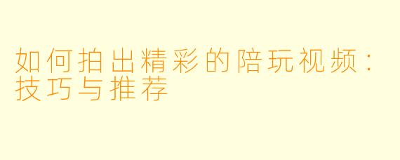 通过以上技巧,你将能拍出引人入胜的陪玩视频,记录下美好的游戏时光。