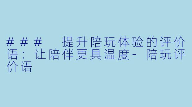 ### 提升陪玩体验的评价语:让陪伴更具温度-陪玩评价语