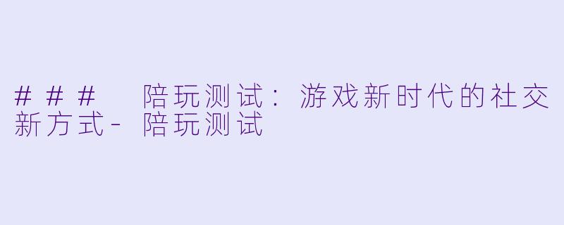 ### 陪玩测试:游戏新时代的社交新方式-陪玩测试