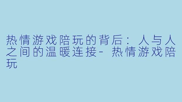热情游戏陪玩的背后:人与人之间的温暖连接-热情游戏陪玩