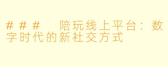 ### 陪玩线上平台:数字时代的新社交方式-陪玩线上平台