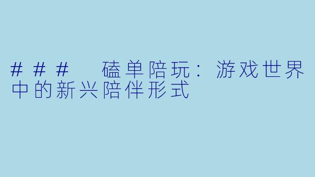 ### 磕单陪玩:游戏世界中的新兴陪伴形式-磕单陪玩